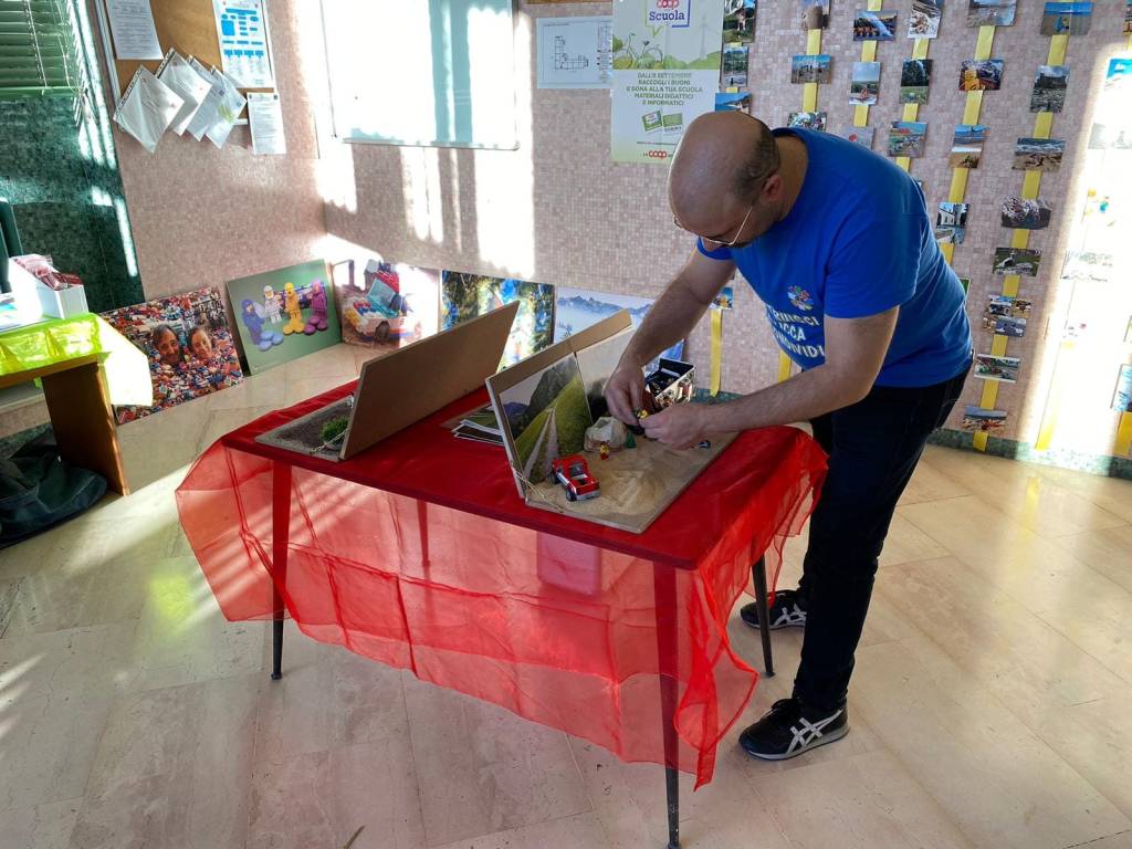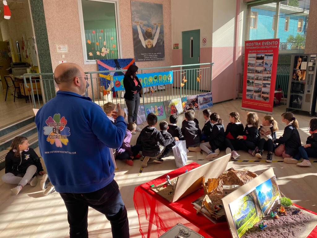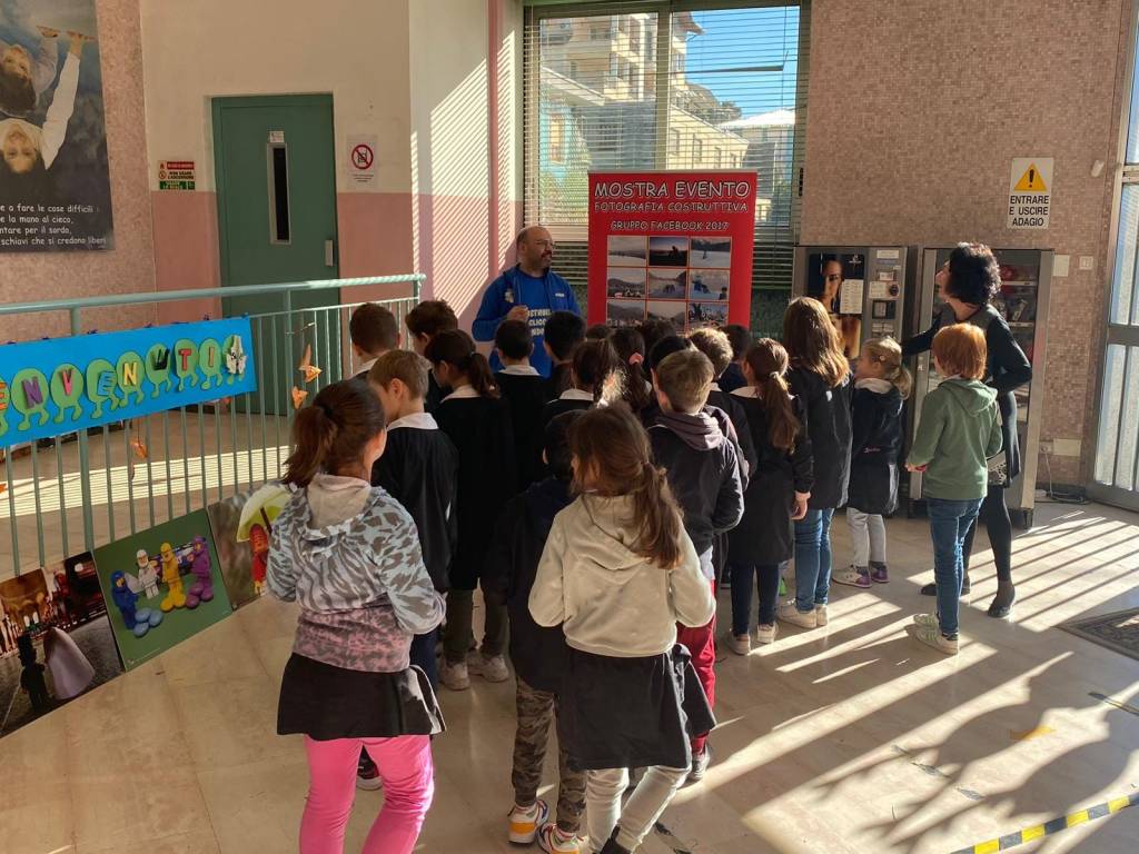 Una giornata didattica costruttiva abbiamo svolto presso il Plesso della Scuola Primaria Morelli di Busto Arsizio (VA) in via Toce, portando con noi alcune stampe da esporre, le cornici per fotografare e le postazioni per i laboratori fotografici