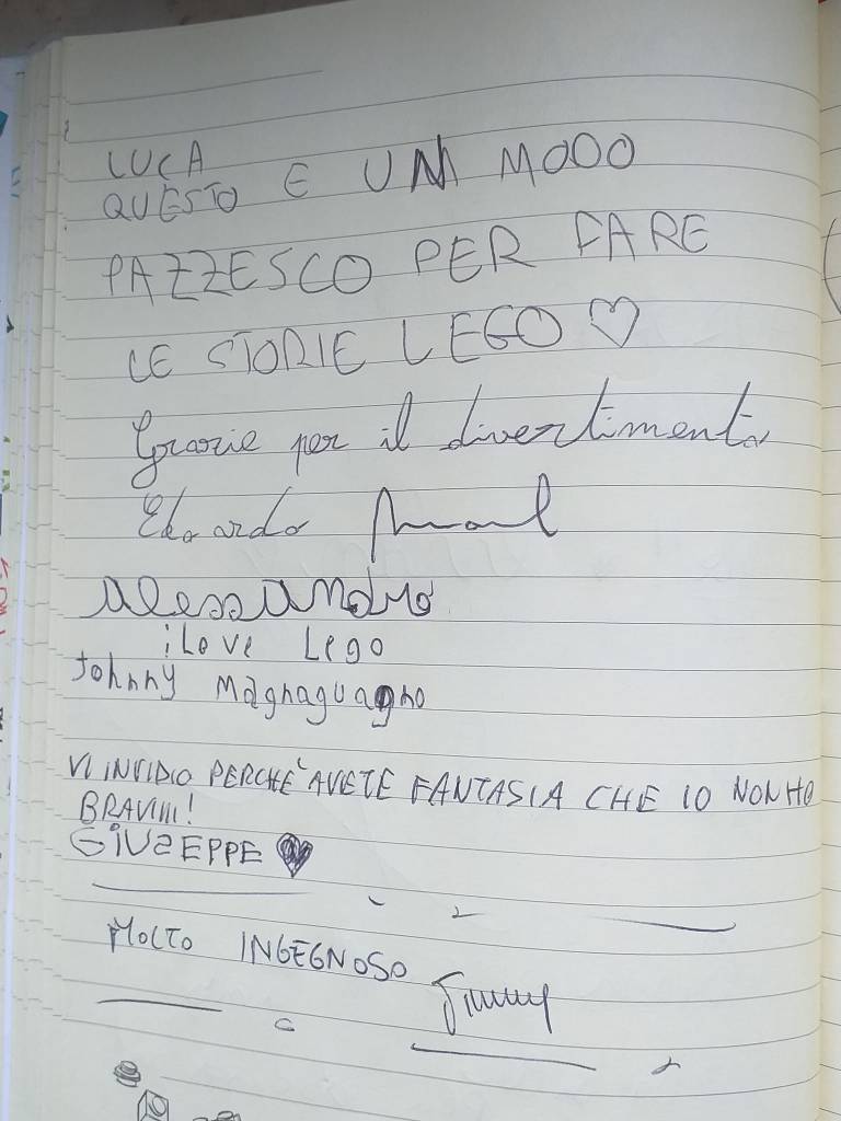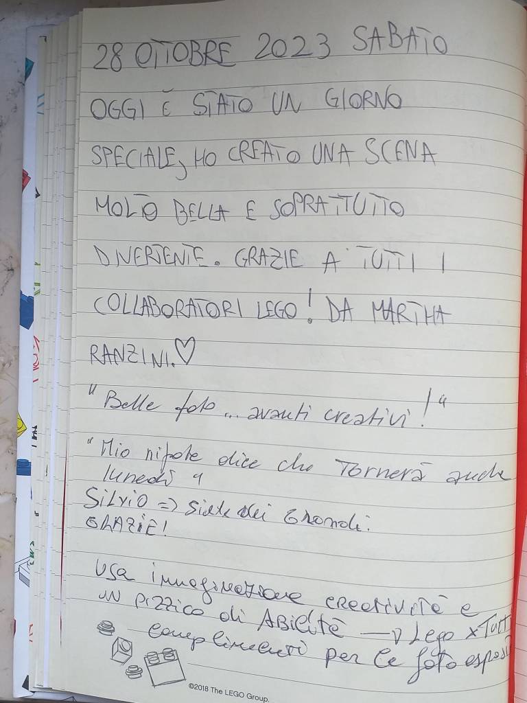 Grazie a Lorenzo Veltri, alle ragazze dell’area gioco LEGO e agli addetti alle pulizie.